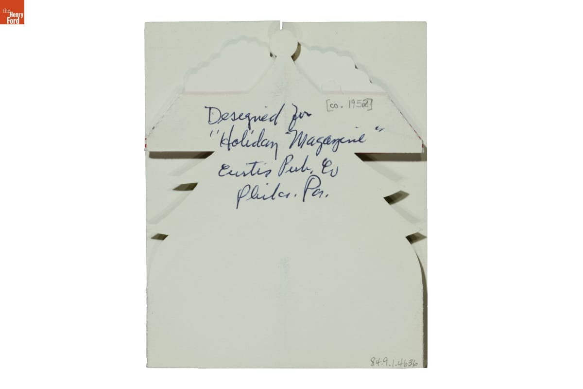 Karl Koehler designed three-dimensional Christmas cards in the late 1940s and 1950s. He folded, scored, and snipped paper printed with his artwork, then assembled the cards in his studio. Koehler's creations folded flat for mailing, but when opened they brought unexpected joy with their pop-out shapes. Holiday shoppers found his line of "Mantelpiece" cards at high-end department stores throughout the country.