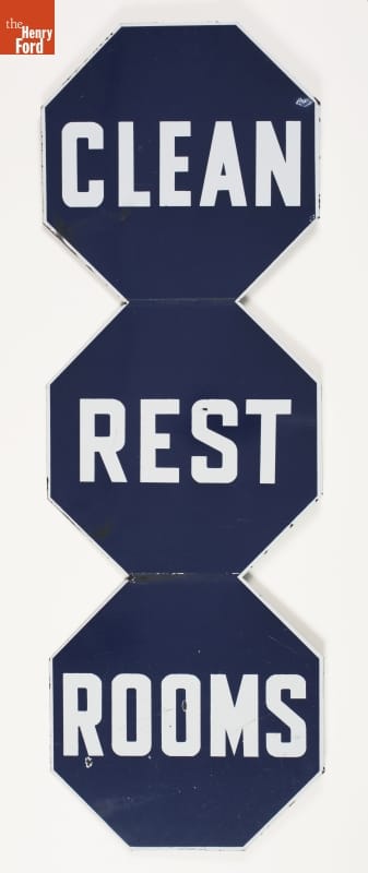 Although gas station restroom facilities date back to the second decade of the 20th century, clean, fully equipped restrooms continued to be a problem. During the 1920s and 1930s, oil companies realized that women -- especially the increasing number of women drivers -- were choosing service stations by the cleanliness of their restrooms and signs like this became more common.