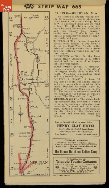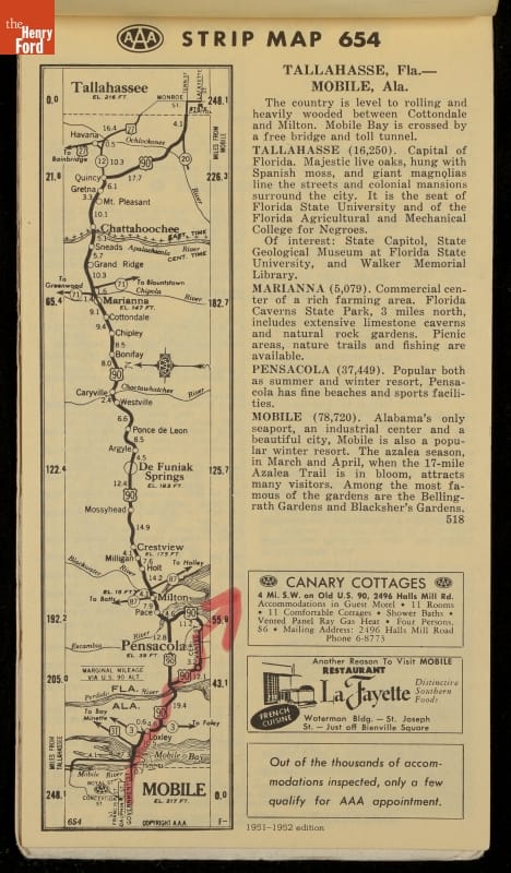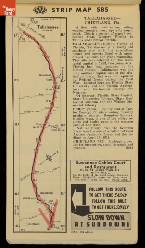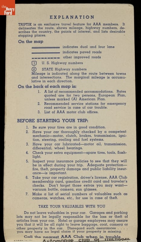 The TripTik, AAA's iconic planning guide, provided travelers with destination directions, points of interest, and a list of services and accommodations available along the way. This guide from the early 1950s described the route from Detroit, Michigan, to Lake Wales, Florida.