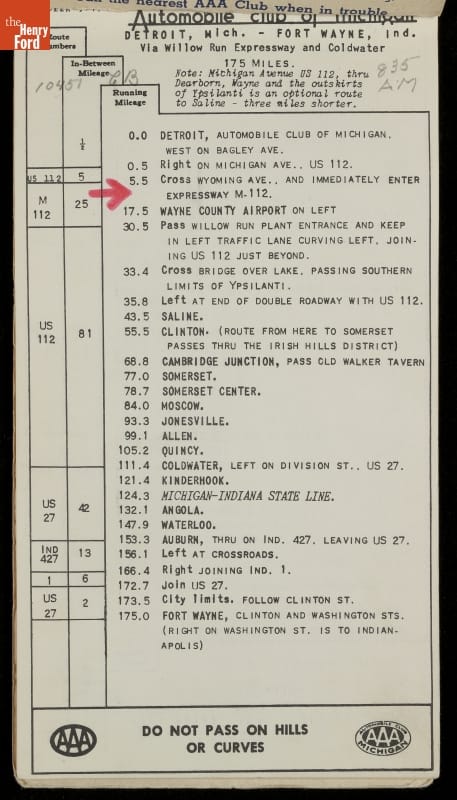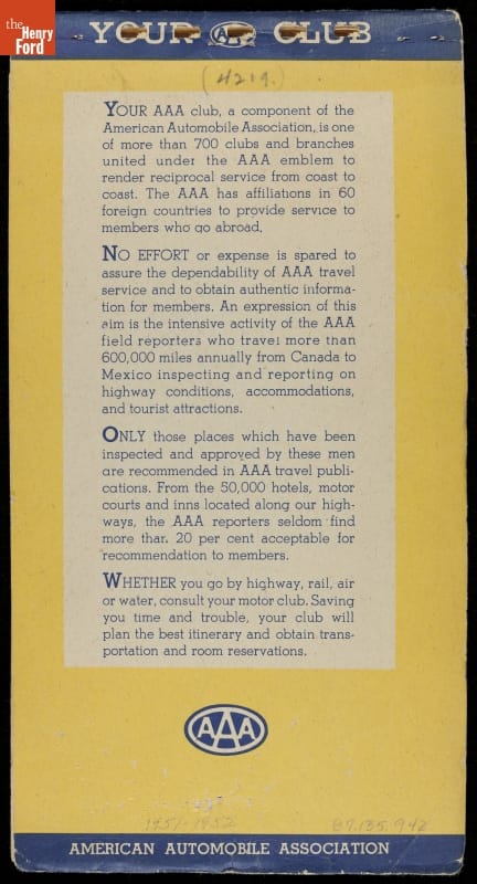From the Collections of The Henry Ford. Gift of the Automobile Club of Michigan.