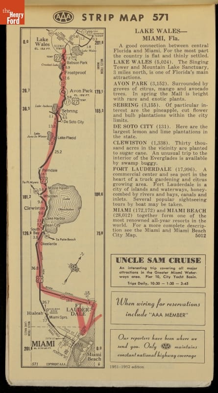 TripTik Map for Detroit, Michigan to Fort Lauderdale, Florida, 1951-1952