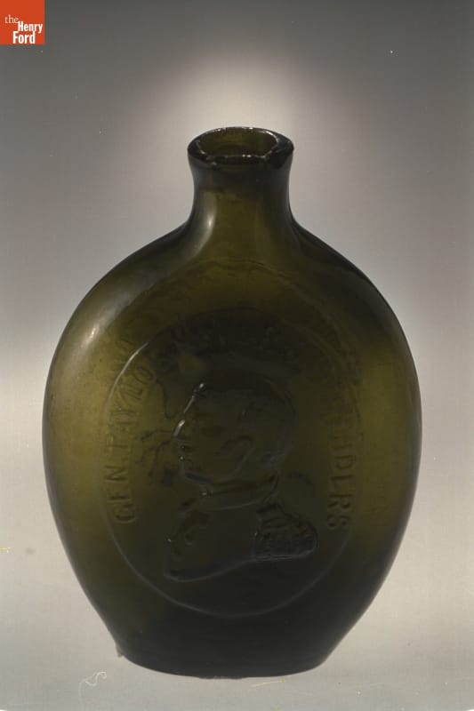Whether depicted as commander-in-chief, the first president of the United States, or a symbol of the republic, George Washington is a common likeness on early American flasks. Washington appears on 72 recorded flask designs--more than any other person. This example depicts Washington as a classical statesman with major general Zachary Taylor, who became the 12th United States president in 1849.