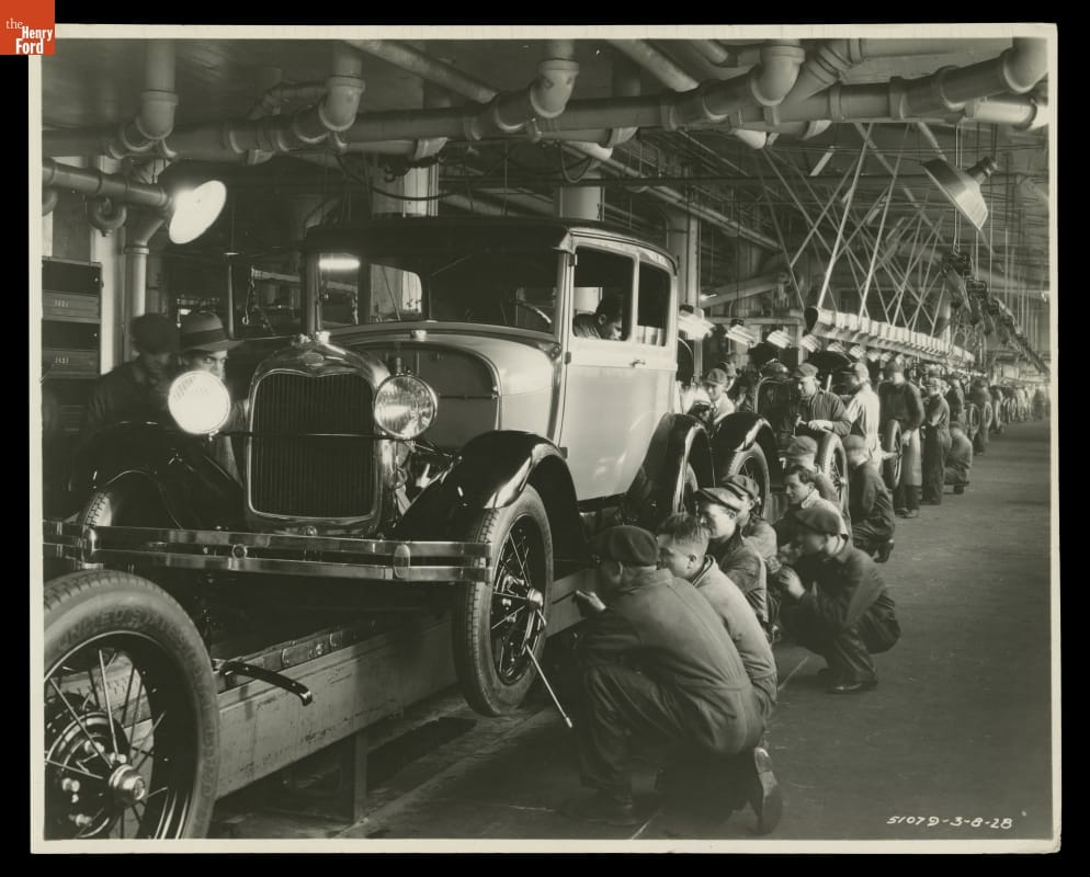1928 Ford Model A on Assembly Line at the Rouge Plant, 1928