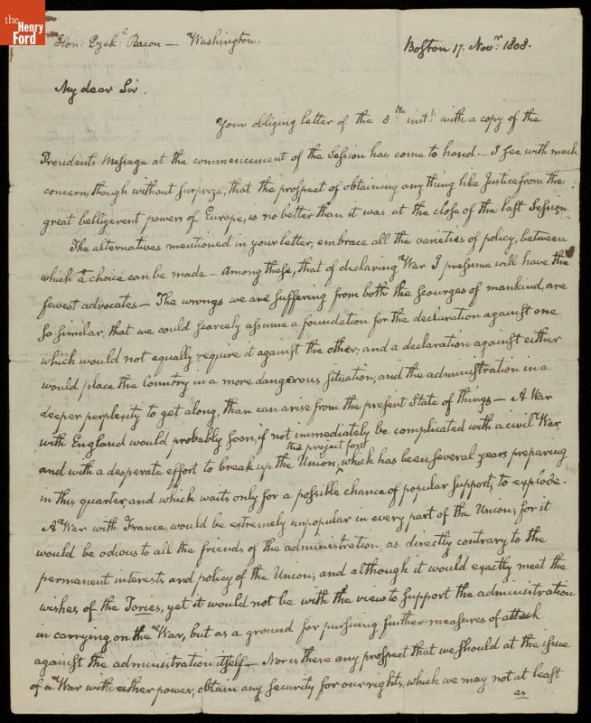 Letter from John Quincy Adams to Ezekiel Bacon, 1808
