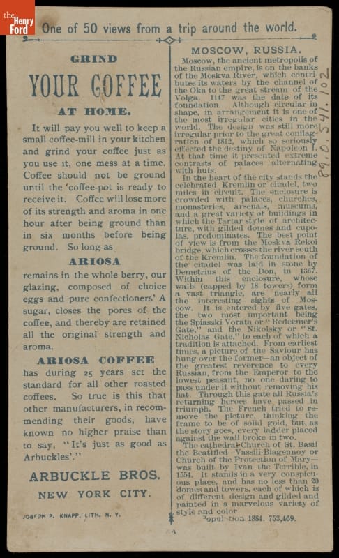 Trade Card for Ariosa Coffee, Arbuckle Bros., "Moscow," 1891