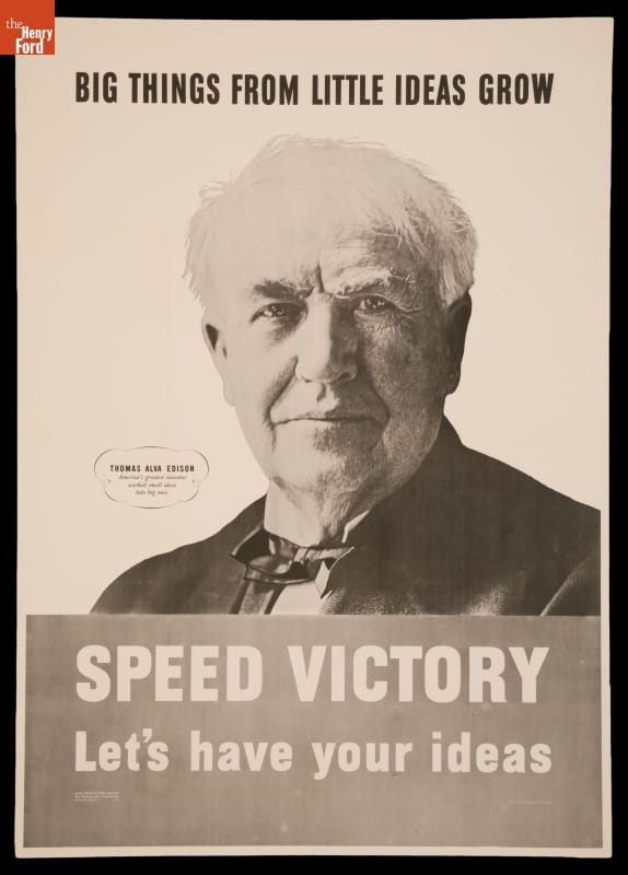 BIG THINGS FROM LITTLE IDEAS GROW / SPEED VICTORY / Let's have your ideas. / THOMAS ALVA EDISON / America's greatest inventor / worked small ideas / into big ones.