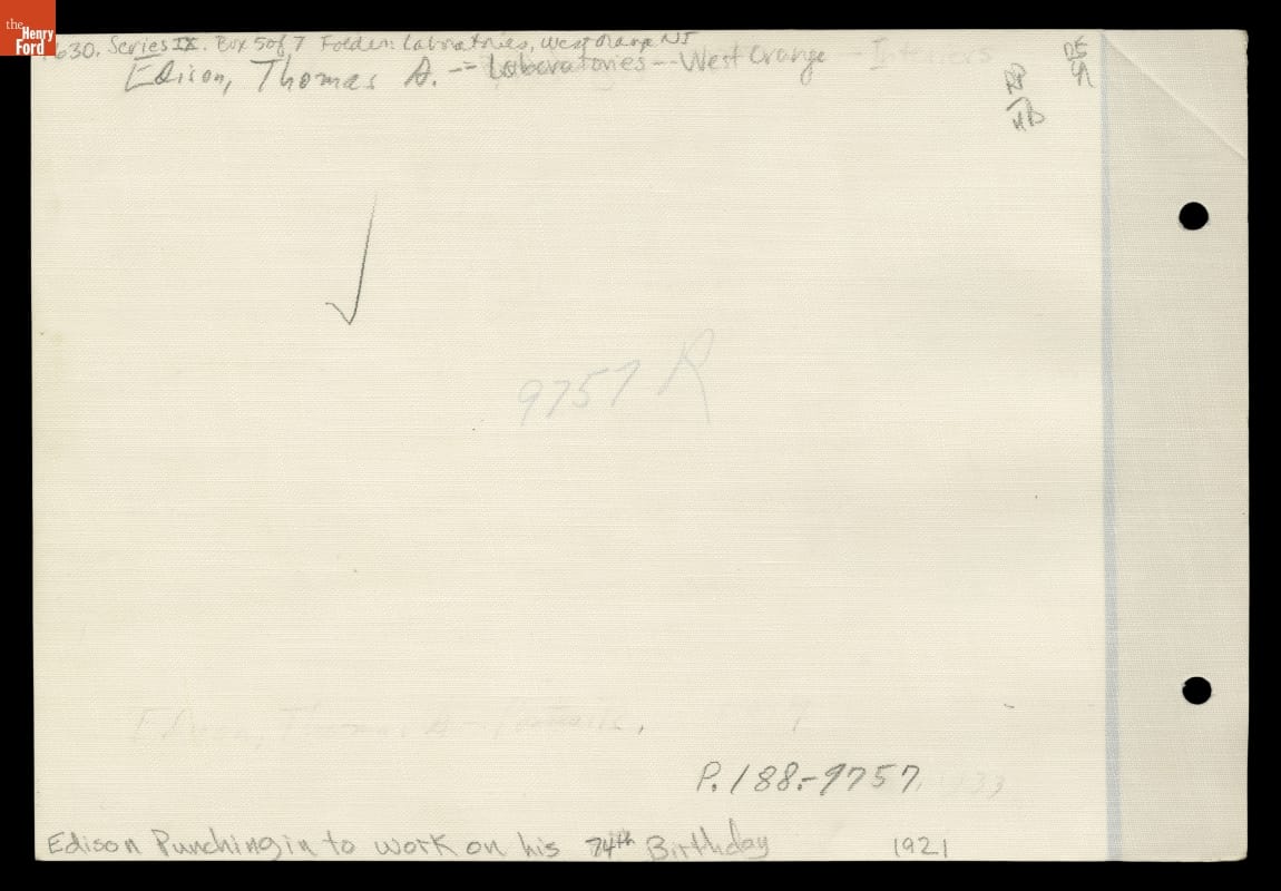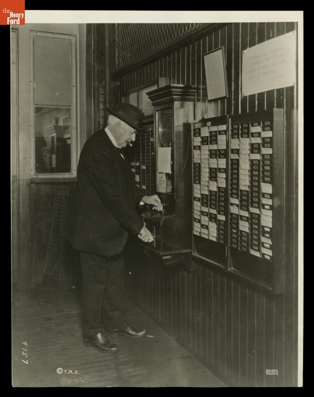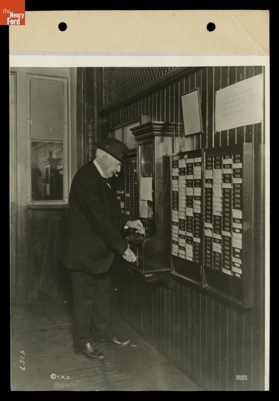 Thomas Edison Punching the Time Clock on His 74th Birthday, February 11, 1921