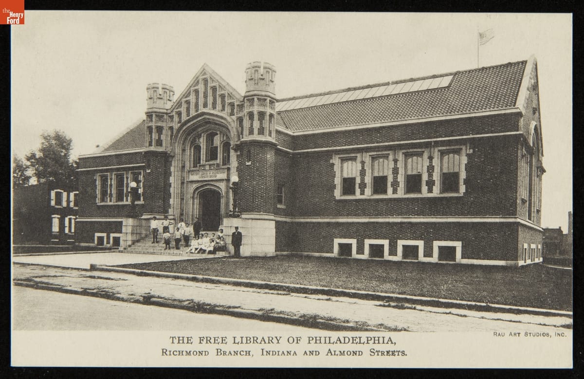 Postcard, "The Free Library of Philadelphia, Richmond Branch, Indiana and Almond Streets," circa 1915