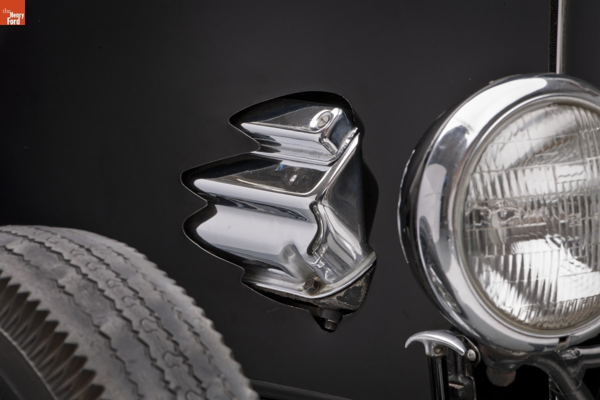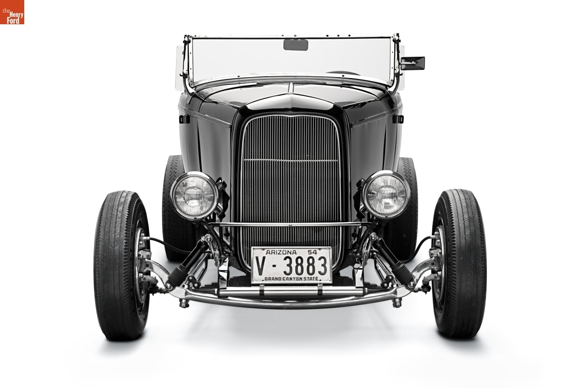 The classic proportions of the 1932 Ford roadster make it a hot rod favorite. Rodders modified these inexpensive vehicles with more modern and powerful engines and parts. Dick Smith of Arizona purchased this hot rod in 1949. From 1954 to 1963, Smith dropped in a 1951 Chrysler V-8 engine and other non-Ford parts making this home-built hot rod his own.