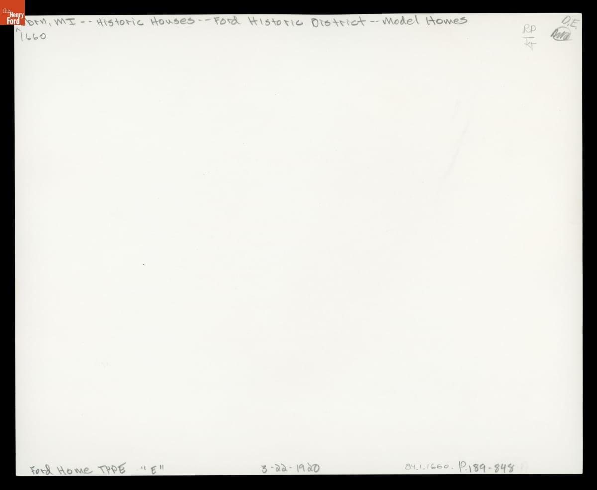 "Type E" Model Home in the Ford Homes District, Dearborn, Michigan, March 1920