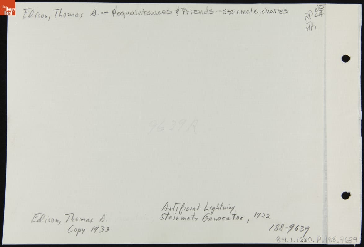 Charles Steinmetz and Thomas Edison Watch Steinmetz's Lightning Generator, October 1922