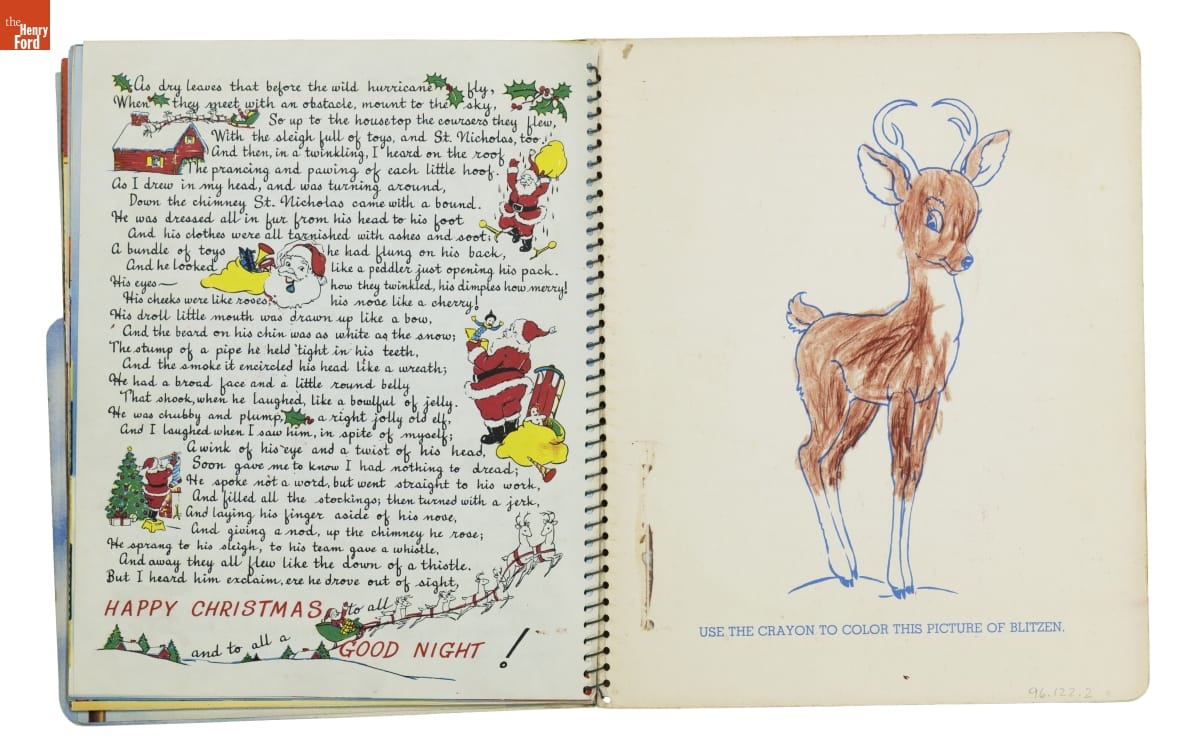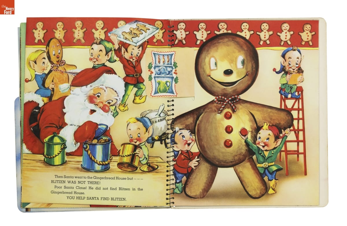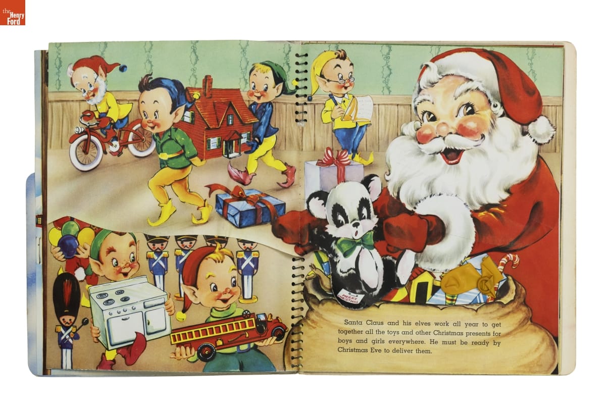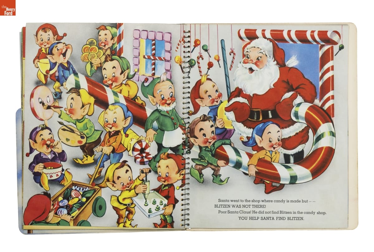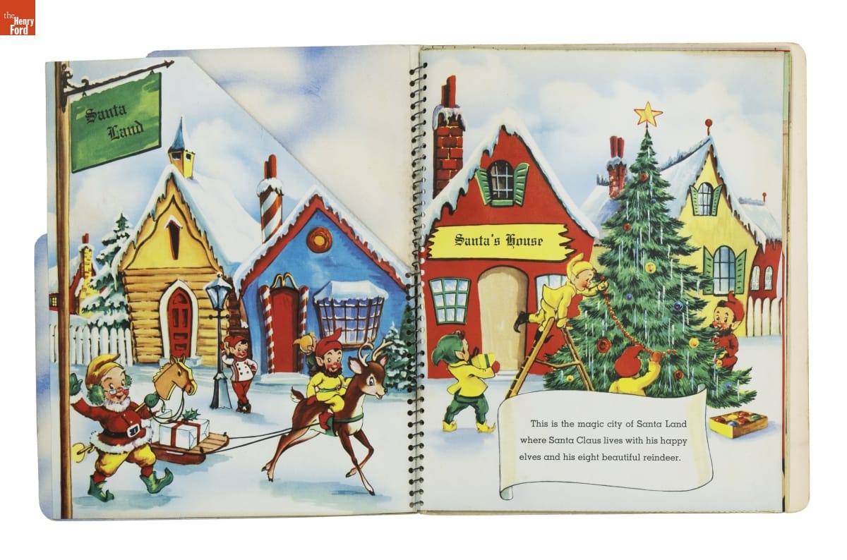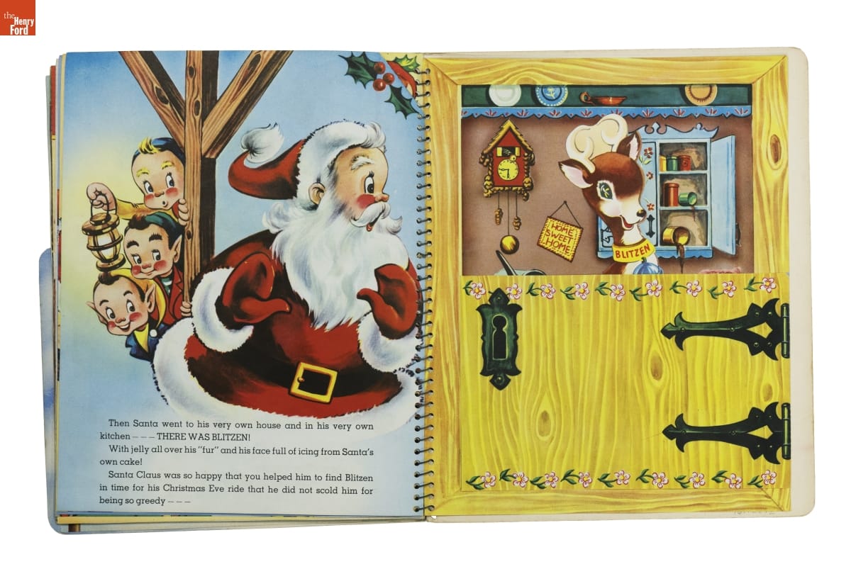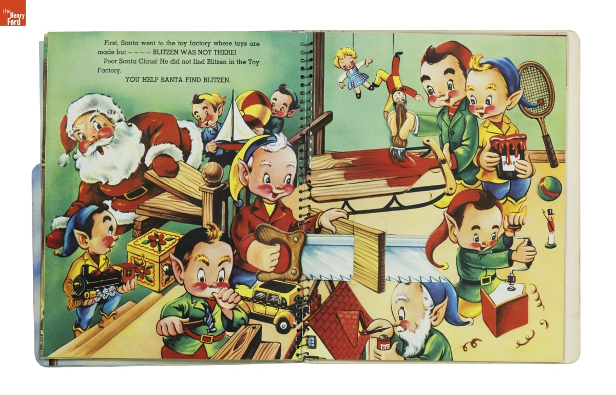 Santa's Busy Day follows jolly St. Nick as he looks for Blitzen, a lost reindeer. The book asks children to help Santa with his search. Readers turn pages to discover images that move and pop up; or find things to do--move cutouts of Santa's reindeer or color a picture of Blitzen. Books like this entertained young kids and encouraged them to enjoy reading.