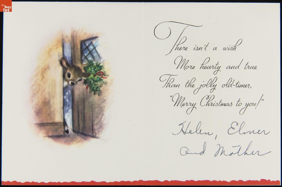 Mailing colorful, commercially designed greeting cards was a 20th-century American tradition. During the holidays, friends and neighbors commonly exchanged cards wishing one another a Merry Christmas or Happy New Year. Publishers sometimes decorated these cards with images of Santa Claus, the legendary holiday gift giver.