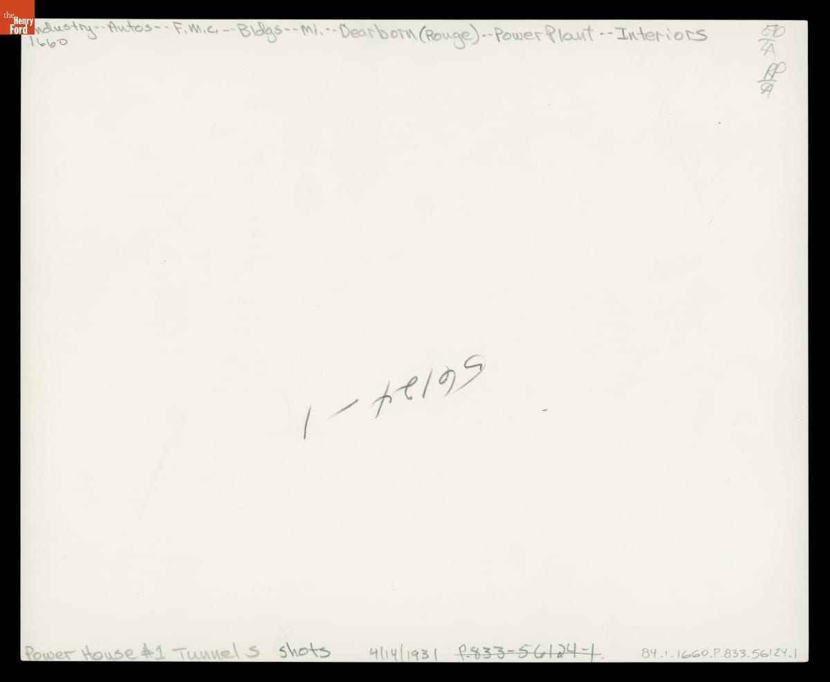 In 1931, Ford Motor Company completed a tunnel diverting water from the Detroit River to its Rouge plant in Dearborn, Michigan. The Rouge used enormous quantities of water to produce steam for the powerhouse's electrical generators, to provide a coolant for steelmaking, and in other operations. The Ford Model A in this photograph emphasized the tunnel's massive dimensions.