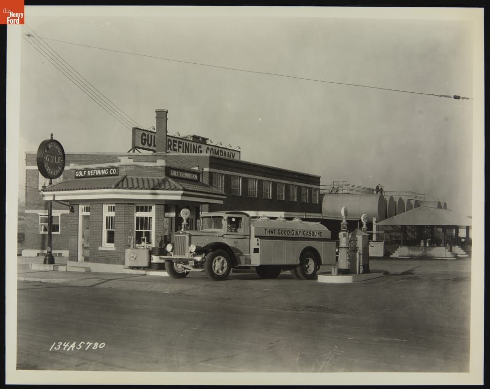 Mack Model BX Tank Truck at a Gas Station, January 1934