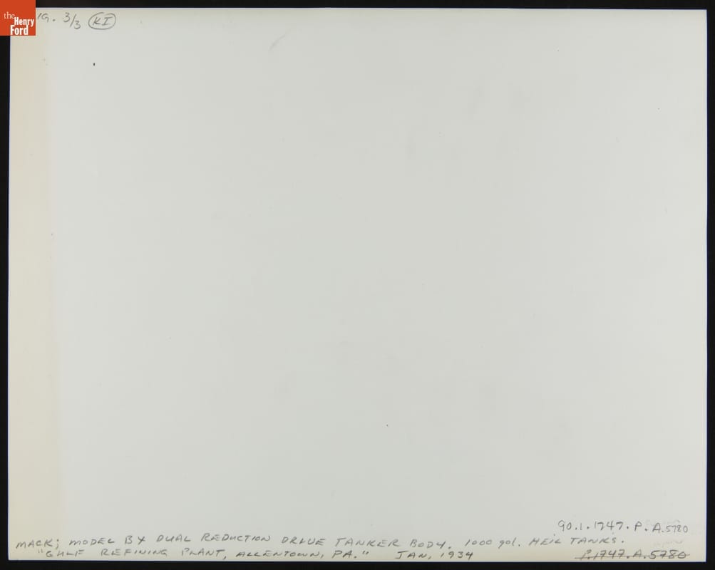 Founded in Brooklyn, New York, in 1900, Mack Brothers Company relocated to Allentown, Pennsylvania, in 1905 and adopted the name Mack Trucks in 1922. Mack-built tank trucks like this had separate compartments for gasoline, diesel fuel, lubricants, and other oil and petroleum products. The delivery trucks transported these products from distributors to gas stations.