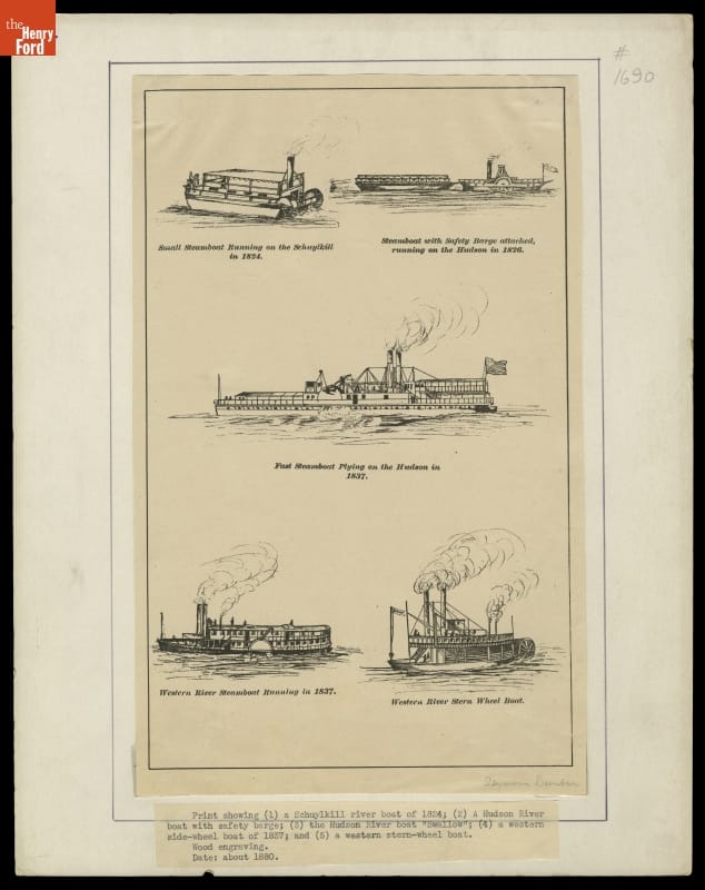 Five River Steamboats (as Depicted 1824-1837), Wood Engraving, circa 1880