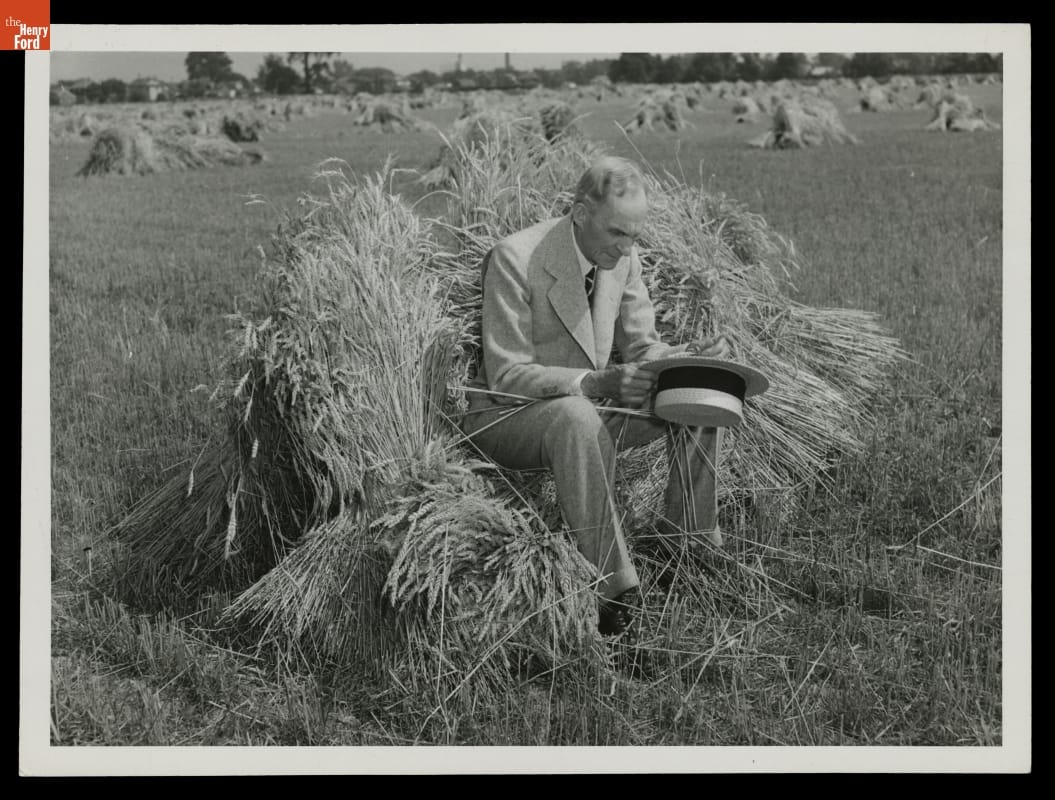 In the 1930s, Henry Ford's ambition to combine agriculture with industry resulted in large-scale soybean experimentation. Ford planted thousands of acres to the legume, which chemists used to create useful products including paints and plastics. He even commissioned a suit made with soybean protein fibers, which he modeled for this photograph taken on July 30, 1941 -- Ford's 78th birthday.