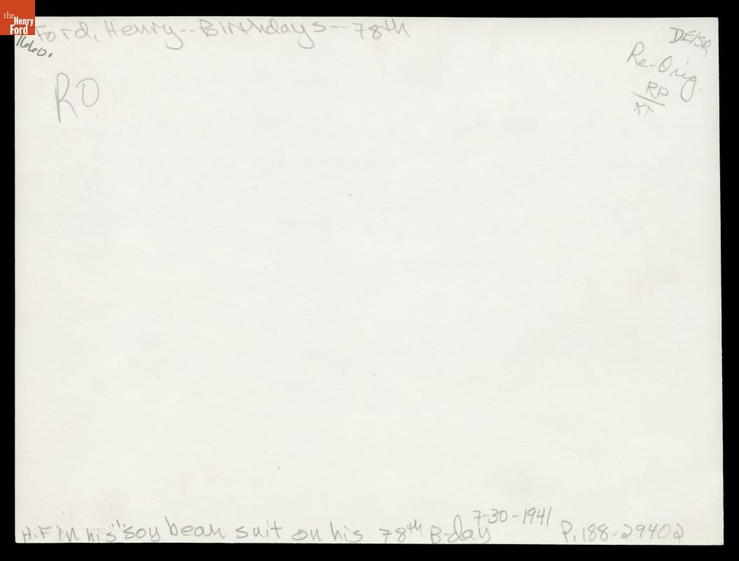 Henry Ford Wearing Soybean Suit on His 78th Birthday, July 30, 1941