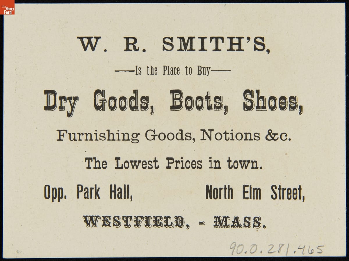 In the last third of the nineteenth century, an unprecedented variety of consumer goods and services flooded the American market. Advertisers, armed with new methods of color printing, bombarded potential customers with trade cards. Americans enjoyed and often saved the vibrant little advertisements found in product packages or distributed by local merchants. Many survive as historical records of commercialism in the United States.