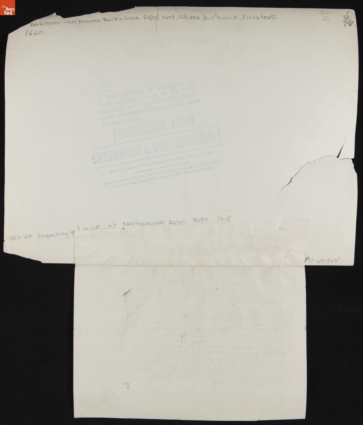 The Panama-Pacific International Exposition celebrated the completion of the Panama Canal and the 400th anniversary of the discovery of the Pacific Ocean. Nearly nineteen million people visited the San Francisco fair throughout 1915, including Thomas Edison and Henry Ford, seen here touring the Palace of Mines and Metallurgy. On this trip, the pair also traveled to meet Luther Burbank and solidified plans for future camping excursions.