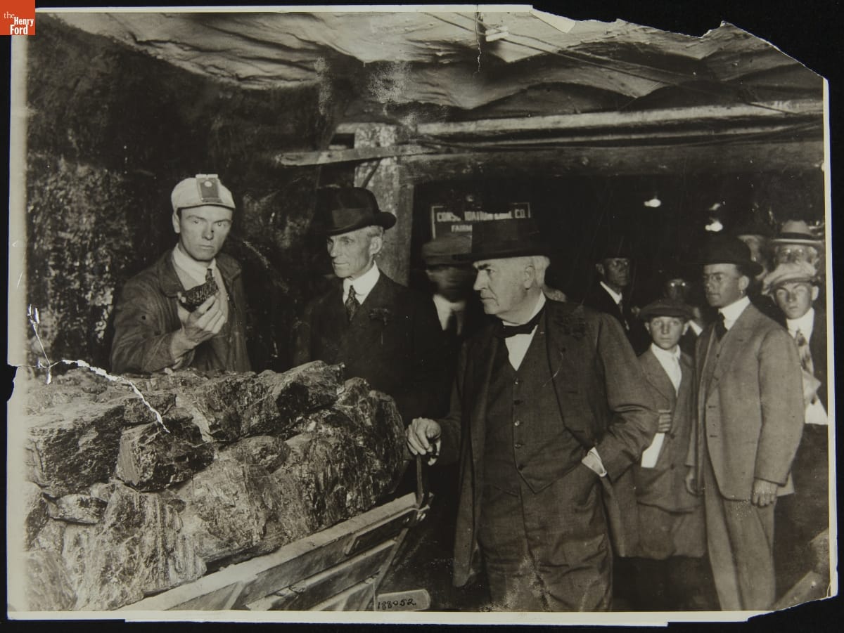 Henry Ford and Thomas Edison Inspecting a Coal Mine at the Panama-Pacific International Exposition, 1915