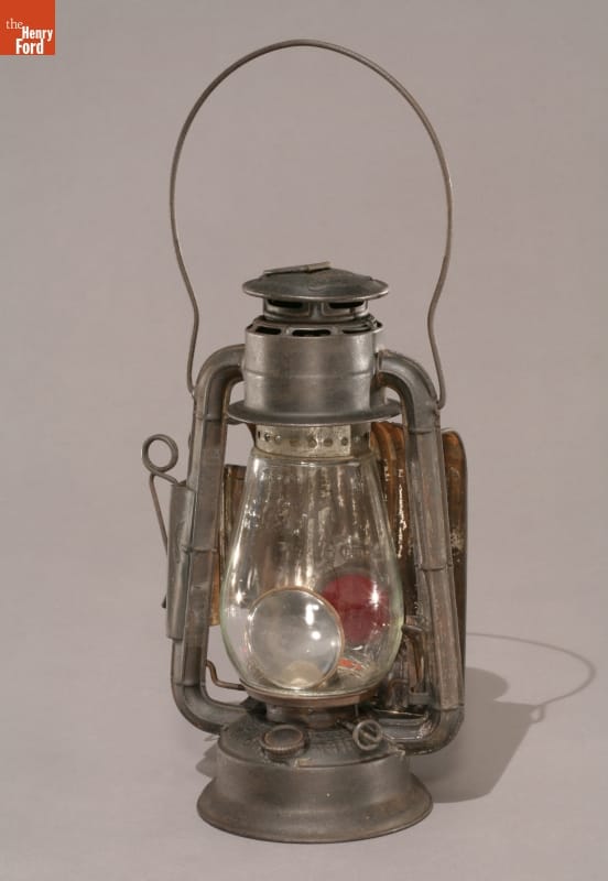 Nighttime driving can be hazardous, even for horse-drawn vehicles. R. E. Deitz Company produced this lantern to help drivers see each other in the dark. A spring clip attaches the lantern to the dash and a convex, bull's-eye glass concentrates the light.