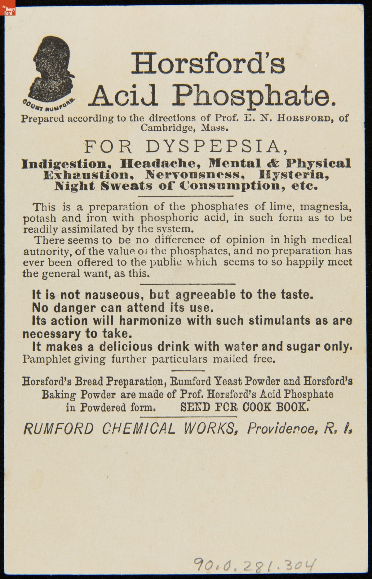 Trade Card for Horsford's Acid Phosphate, Rumford Chemical Works, 1866-1890