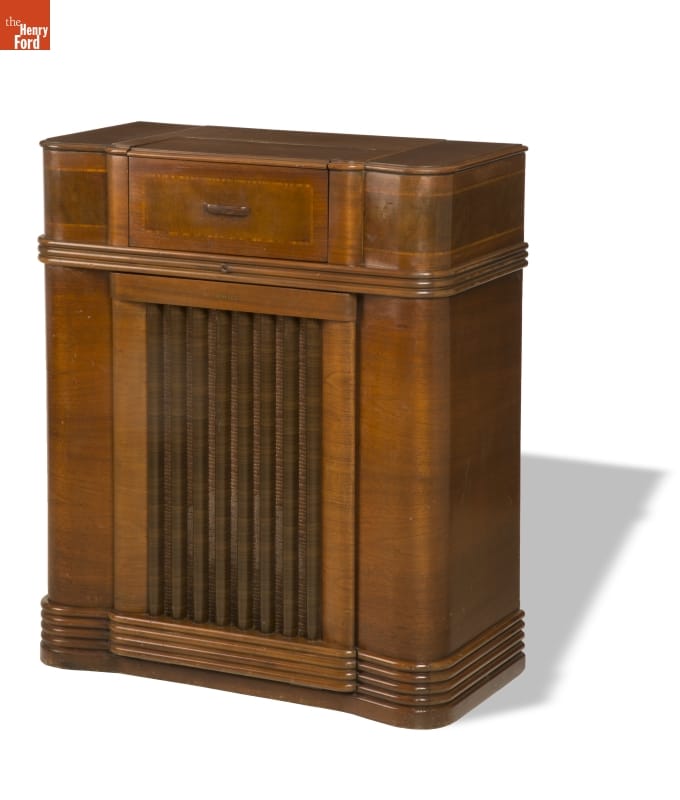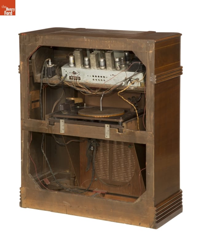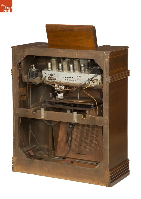 By the late 1920s, radio tuners, phonographs, amplifiers, and loudspeakers began to condense into one unit. Manufacturers housed this technology within attractive wooden consoles, accepted as furniture within consumer's living rooms. A growing sophistication in radio programming--and availability of recorded music--anchored radio-phonographs as passive listening and entertainment devices within the home.