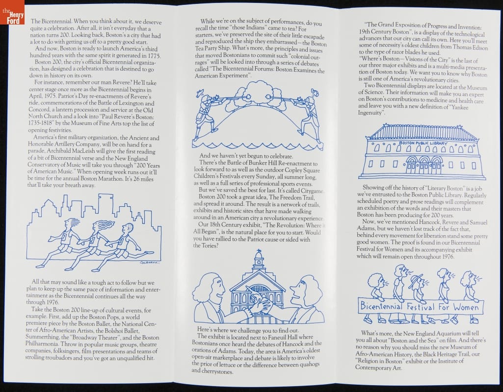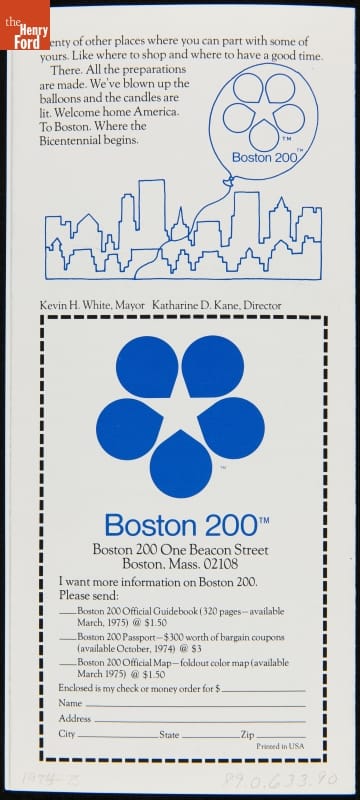 The 1976 Bicentennial of American Independence was a major cultural phenomenon that incited a wave of patriotism and nostalgia across the country. Communities nationwide -- both big and small -- organized their own Bicentennial celebrations. Boston's Bicentennial organization promoted special exhibitions and walking trails, and coordinated debates, musical performances, and other cultural events to celebrate the nation's 200th birthday.