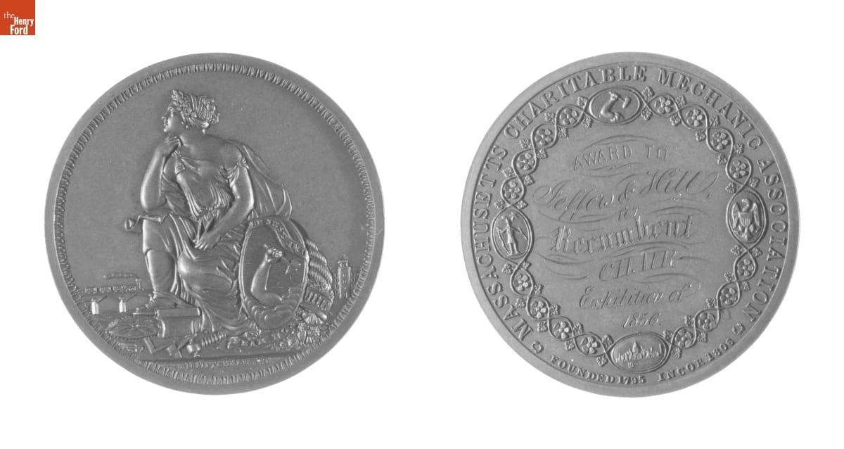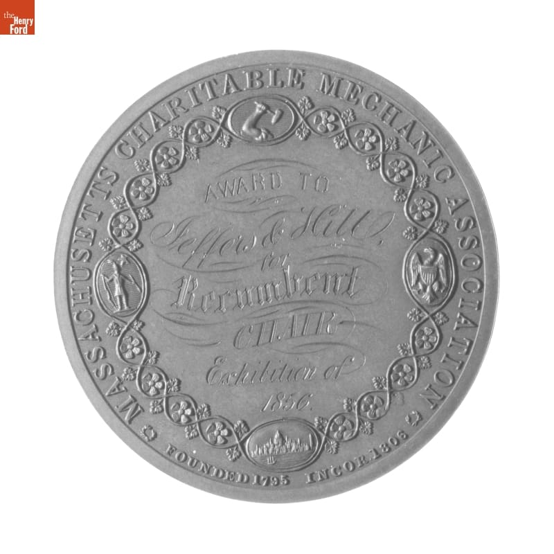 Nineteenth-century mechanics' societies and business associations promoted technological ingenuity by sponsoring fairs and competitions. Officials awarded medals, certificates, and other premiums to exhibitors whose products were deemed worthy of merit. The Massachusetts Charitable Mechanic Association presented this medal to the firm of Jeffers and Hill for a "recumbent chair."