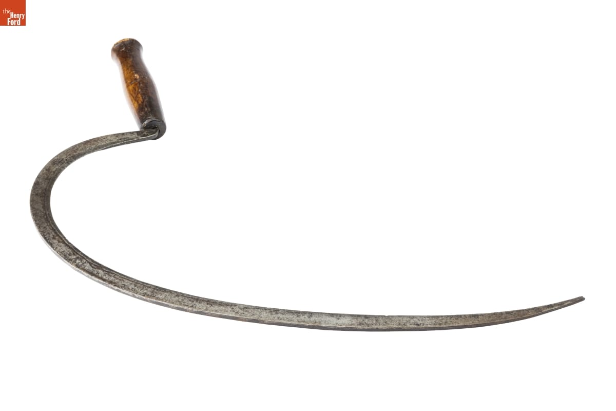 Sickles helped farmers harvest grasses and grains. Using this age-old tool, however, was backbreaking work. Laborers constantly had to stoop over to cut and gather the crops. The invention of mid-nineteenth-century mechanized equipment -- reapers and mowers -- made this handheld harvesting tool nearly obsolete. Still, the sickle remained useful on smaller farms or for work around the yard or garden.