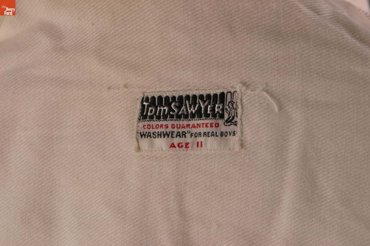 Clothing label: Tom Sawyer Colors Guaranteed WashWear "For Real Boys" Age 12