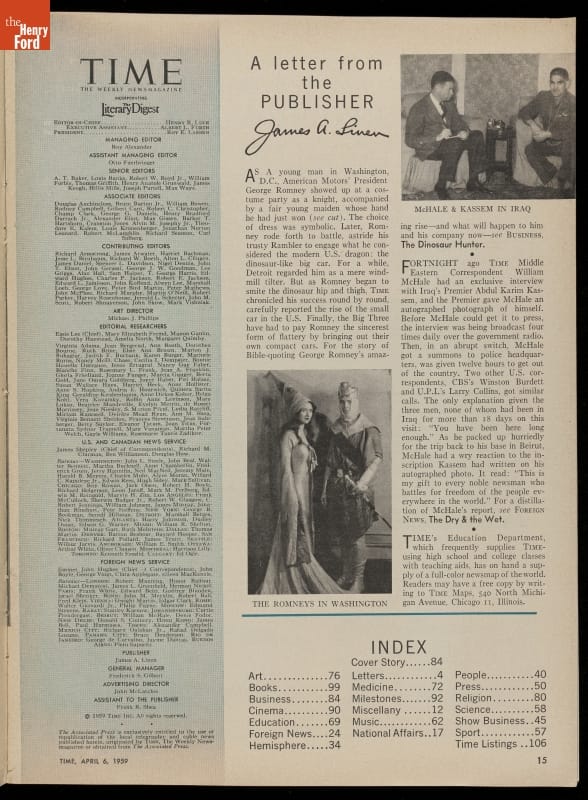 "Time" Magazine, April 6, 1959