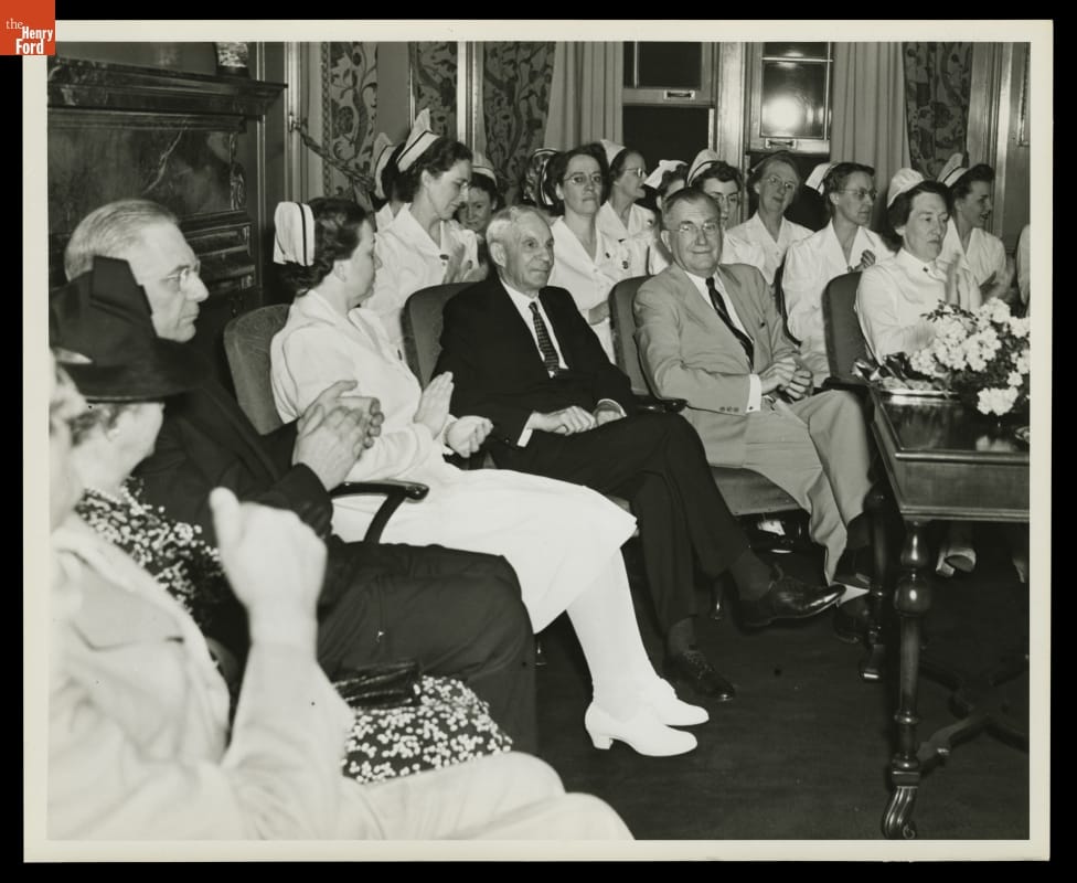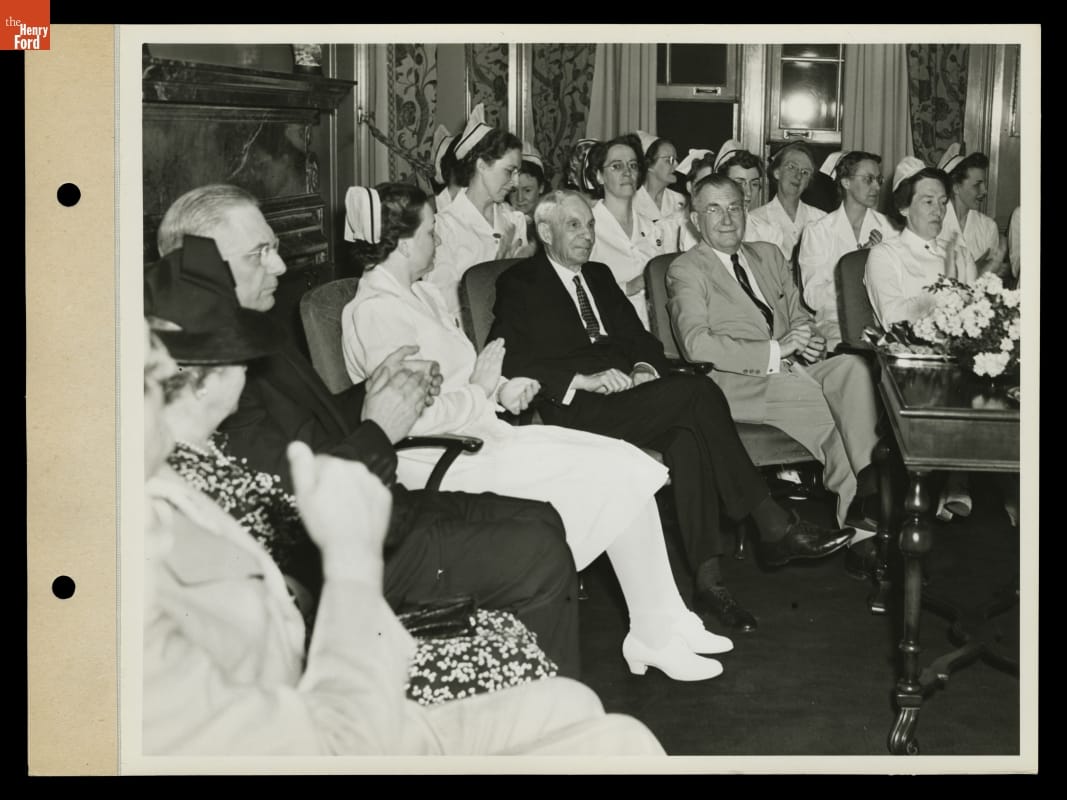 Clara Ford and Henry Ford Attending Graduation Ceremony for Henry Ford Hospital School of Nursing, Detroit, Michigan, 1945