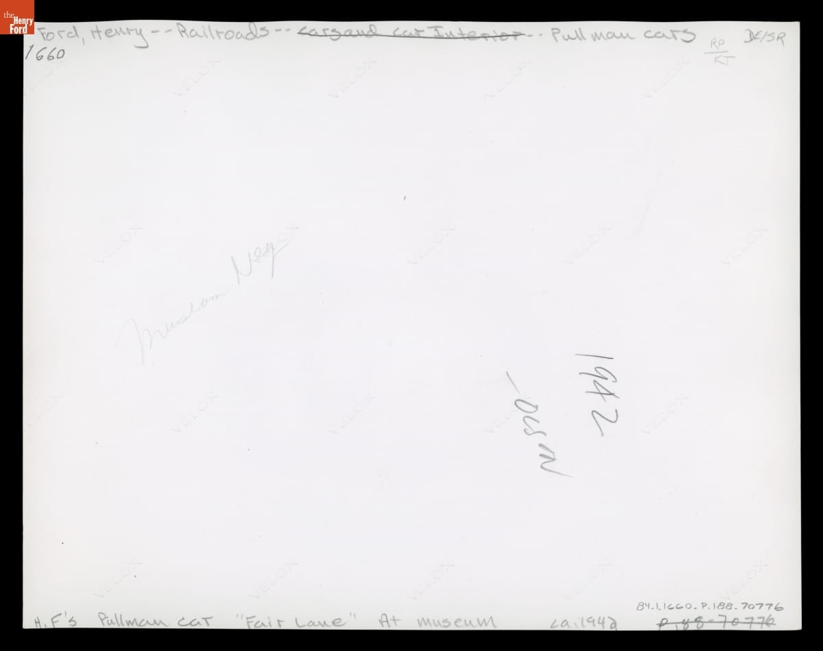 Henry Ford's Private Railroad Car, "Fair Lane," outside Henry Ford Museum, November 12, 1942