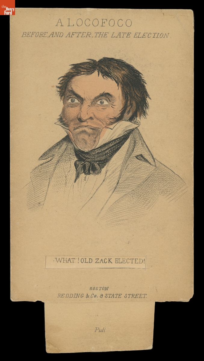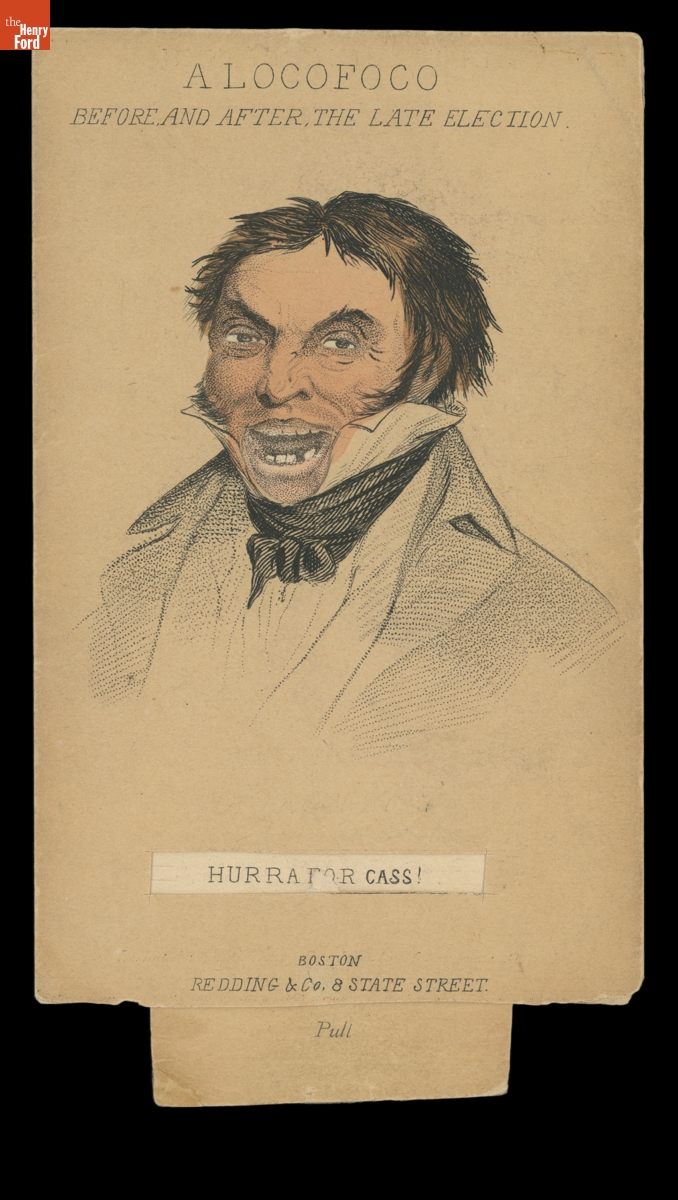 Metamorphic Campaign Card, "A Locofoco Before and After the Late Election: Hurra for Cass! / What Old Zack Elected," 1848