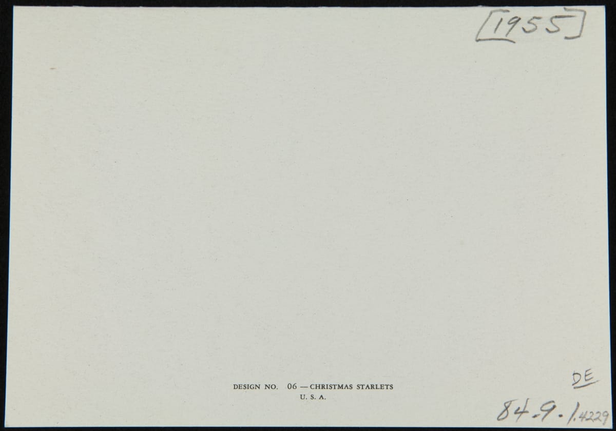 Mailing colorful, commercially designed greeting cards was a 20th-century American tradition. During the holidays, friends and neighbors commonly exchanged cards wishing the recipient a merry Christmas. Santa Claus, a regular feature, is sometimes depicted non-traditionally in scenes that reflect the time. The carousel in this circa 1955 example -- a common attraction at postwar-era kiddie parks -- represents the youthful delight of the season.