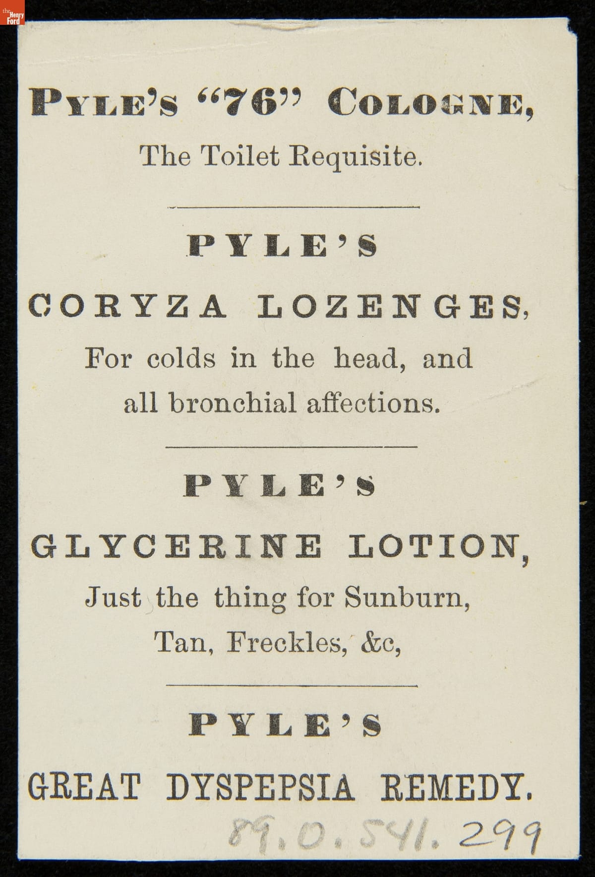 Trade Card for Cyrus Pyle, Apothecary Products, 1875-1885