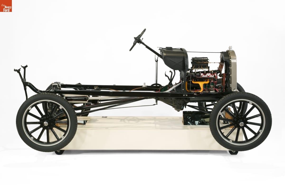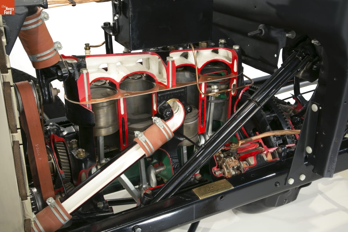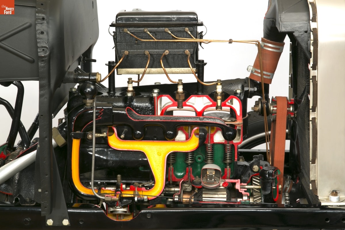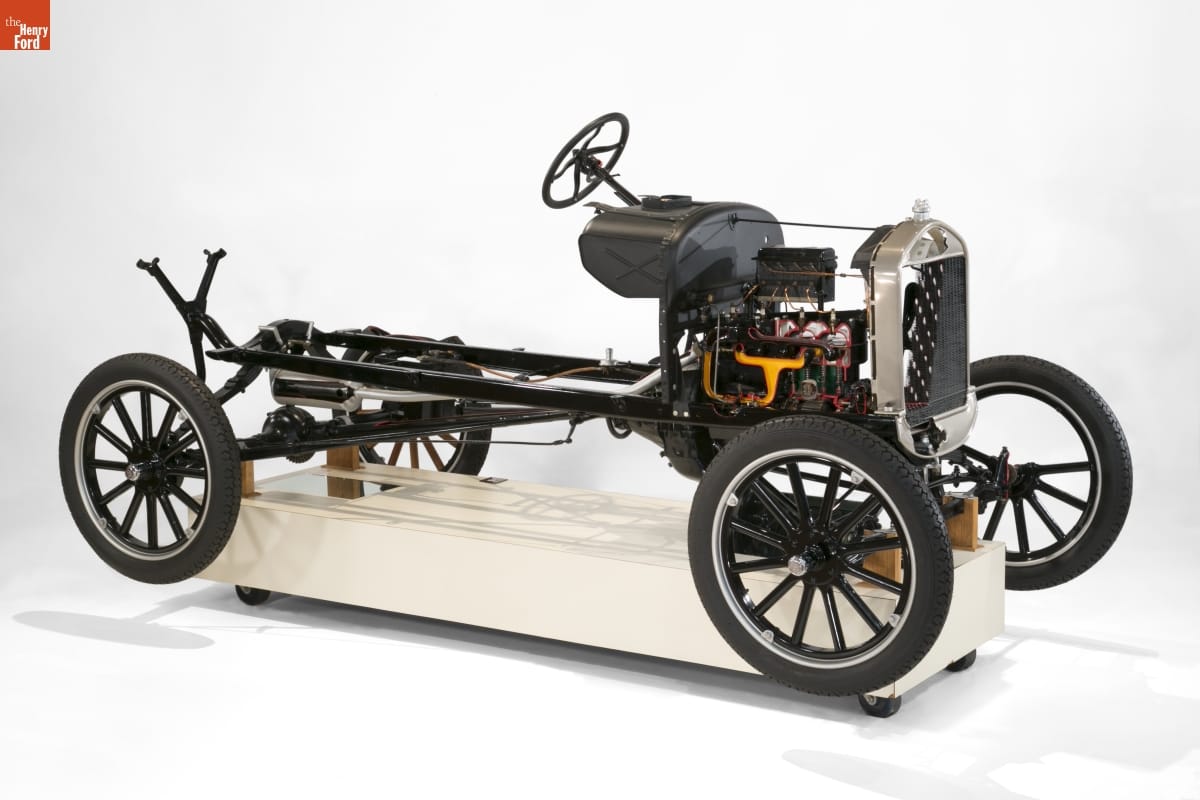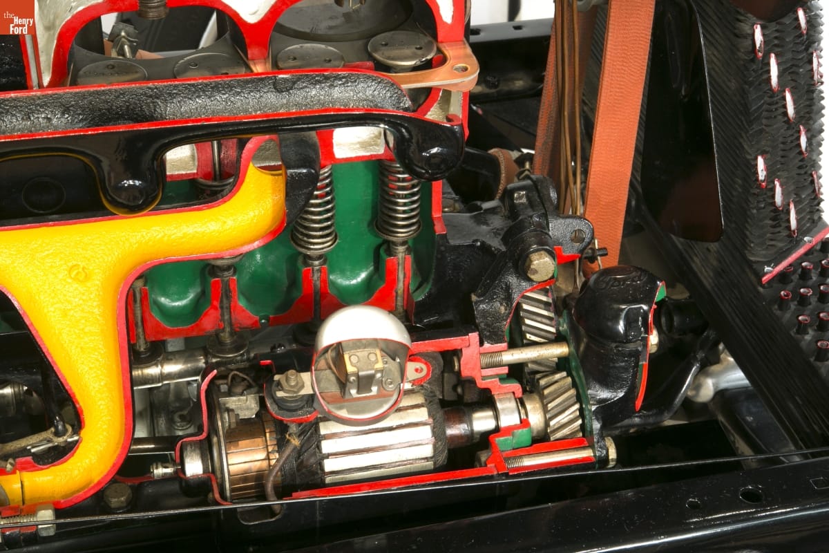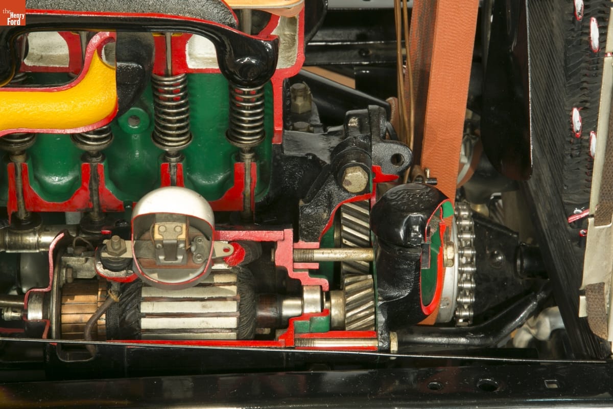 This cutaway was constructed in the workshops of Agencia Ford Stabile, a Ford distributor in Rosario, Argentina. It was assembled using miscellaneous Model T components from several different years (the engine block is 1922) -- amply demonstrating the interchangeability of Model T parts. It was exhibited in the distributor's showroom and at automobile shows in order to better familiarize Argentineans with the Model T.