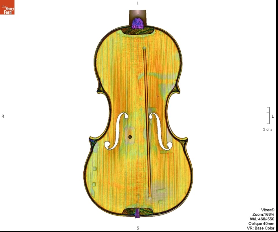 In the 1920s, Henry Ford purchased several exquisite Italian violins, including this one by Nicolo Amati. Amati's grandfather Andrea founded the Cremona school of violinmaking in the 16th century. During Nicolo Amati's working life, the Amati workshop produced some of the finest violins in Europe and trained many apprentices, possibly including the young Antonio Stradivari.