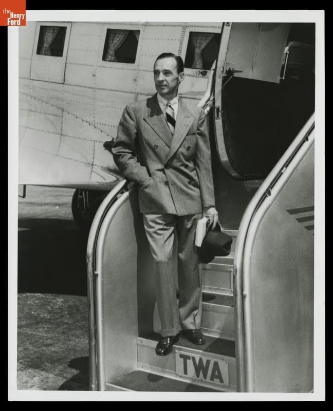 Edsel Ford on the Steps of a TWA Commercial Airplane, circa 1940