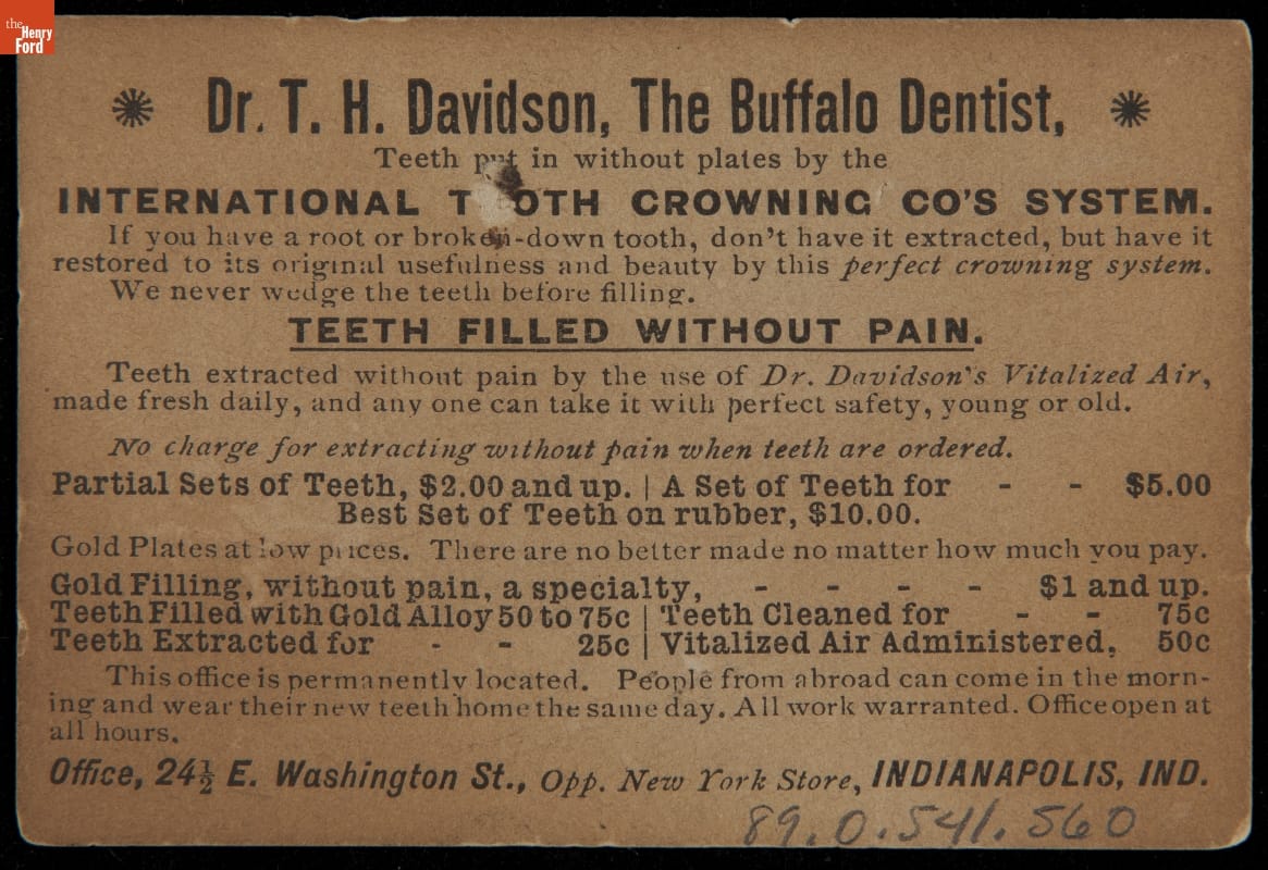 THF214536 / Trade Card for Dr. T. H. Davidson, The Buffalo Dentist, 1880-1900