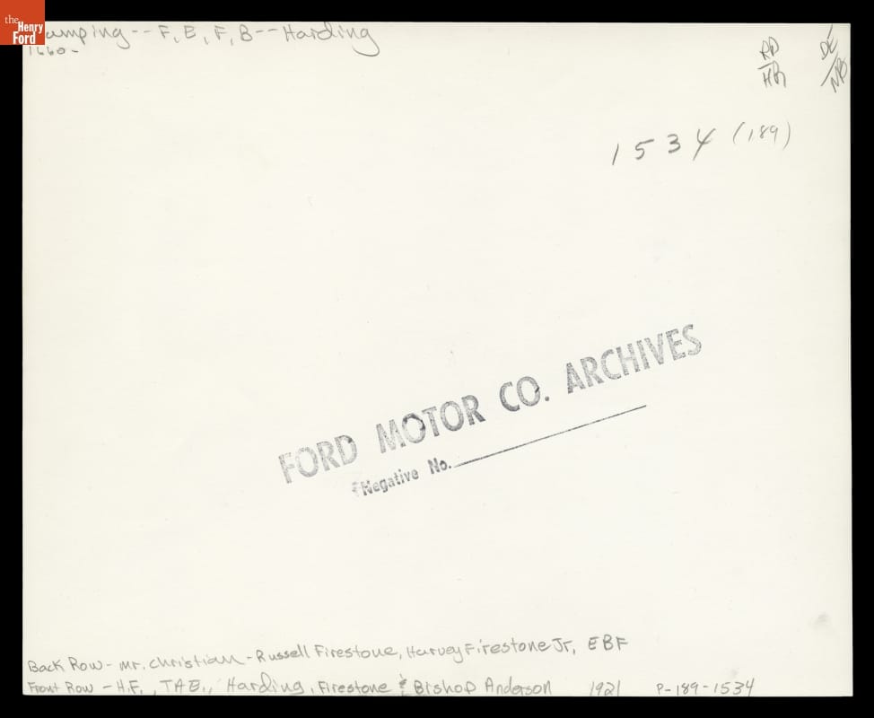 President Harding Visiting the "Vagabonds" on their Camping Trip, 1921