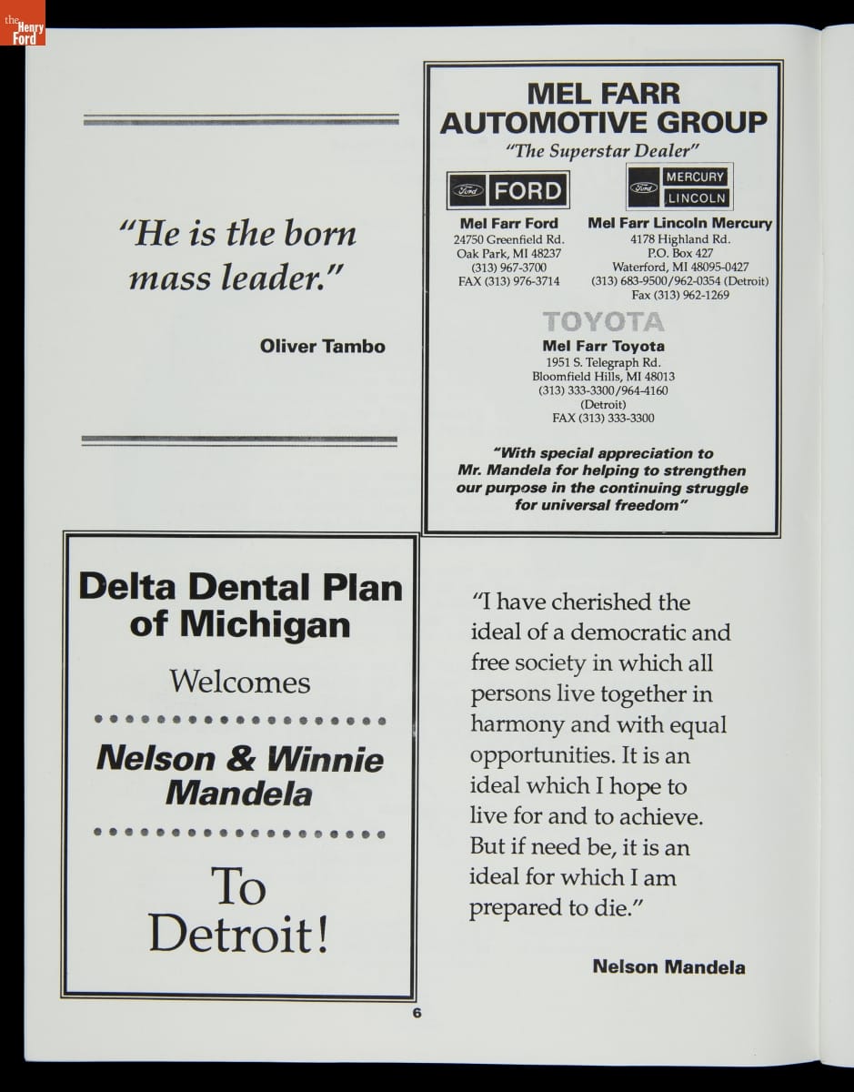 THF711379 / Nelson Mandela Freedom Tour Program, "Amandla: Mandela Detroit '90," June 28, 1990 / page 6