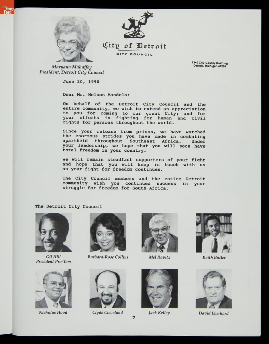THF711380 / Nelson Mandela Freedom Tour Program, "Amandla: Mandela Detroit '90," June 28, 1990 / page 7