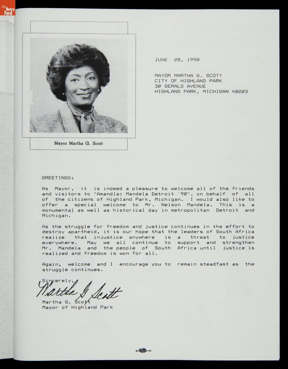 THF711450 / Nelson Mandela Freedom Tour Program, "Amandla: Mandela Detroit '90," June 28, 1990 / page 77