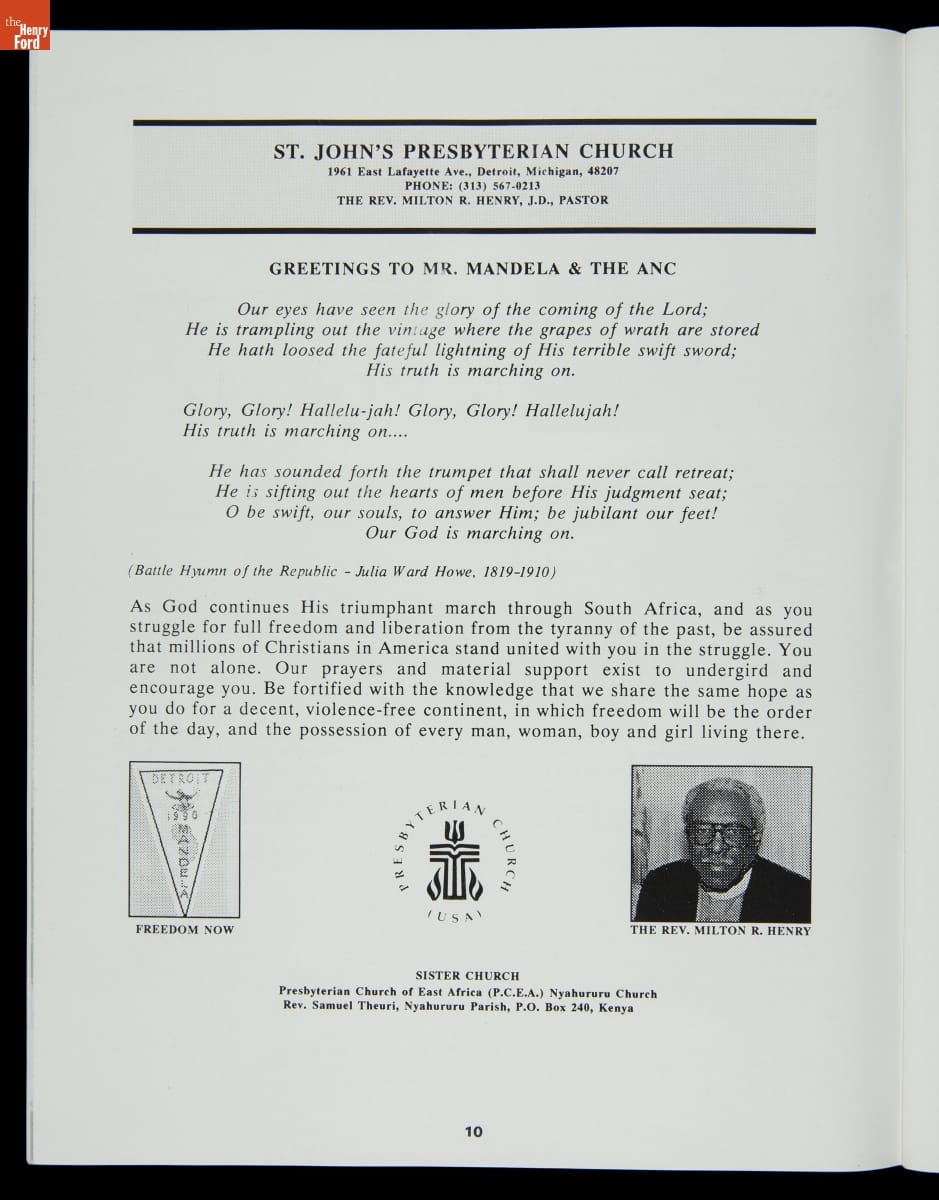 THF711383 / Nelson Mandela Freedom Tour Program, "Amandla: Mandela Detroit '90," June 28, 1990 / page 10