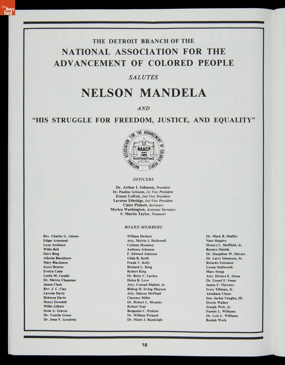 THF711391 / Nelson Mandela Freedom Tour Program, "Amandla: Mandela Detroit '90," June 28, 1990 / page 18