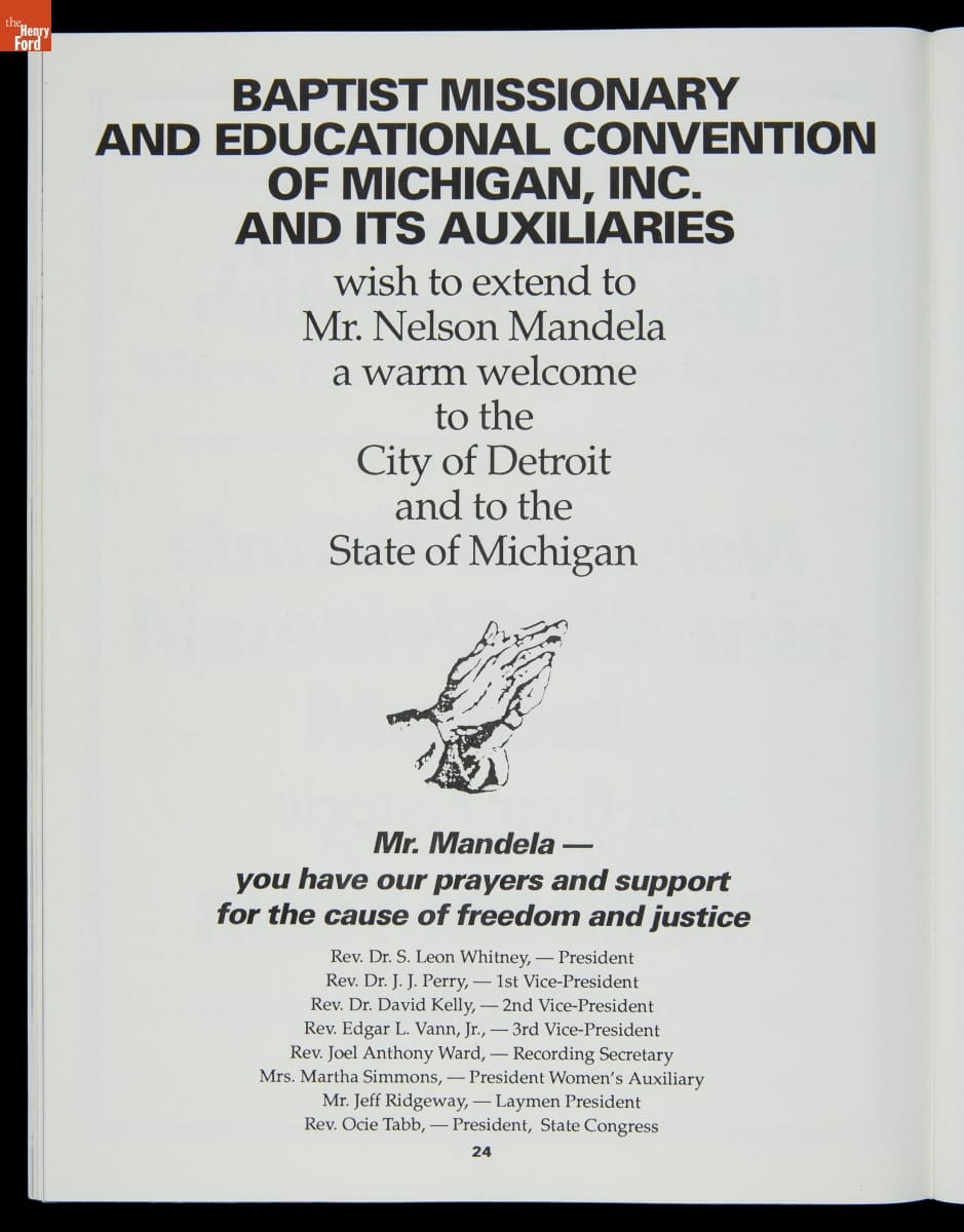 THF711397 / Nelson Mandela Freedom Tour Program, "Amandla: Mandela Detroit '90," June 28, 1990 / page 24
